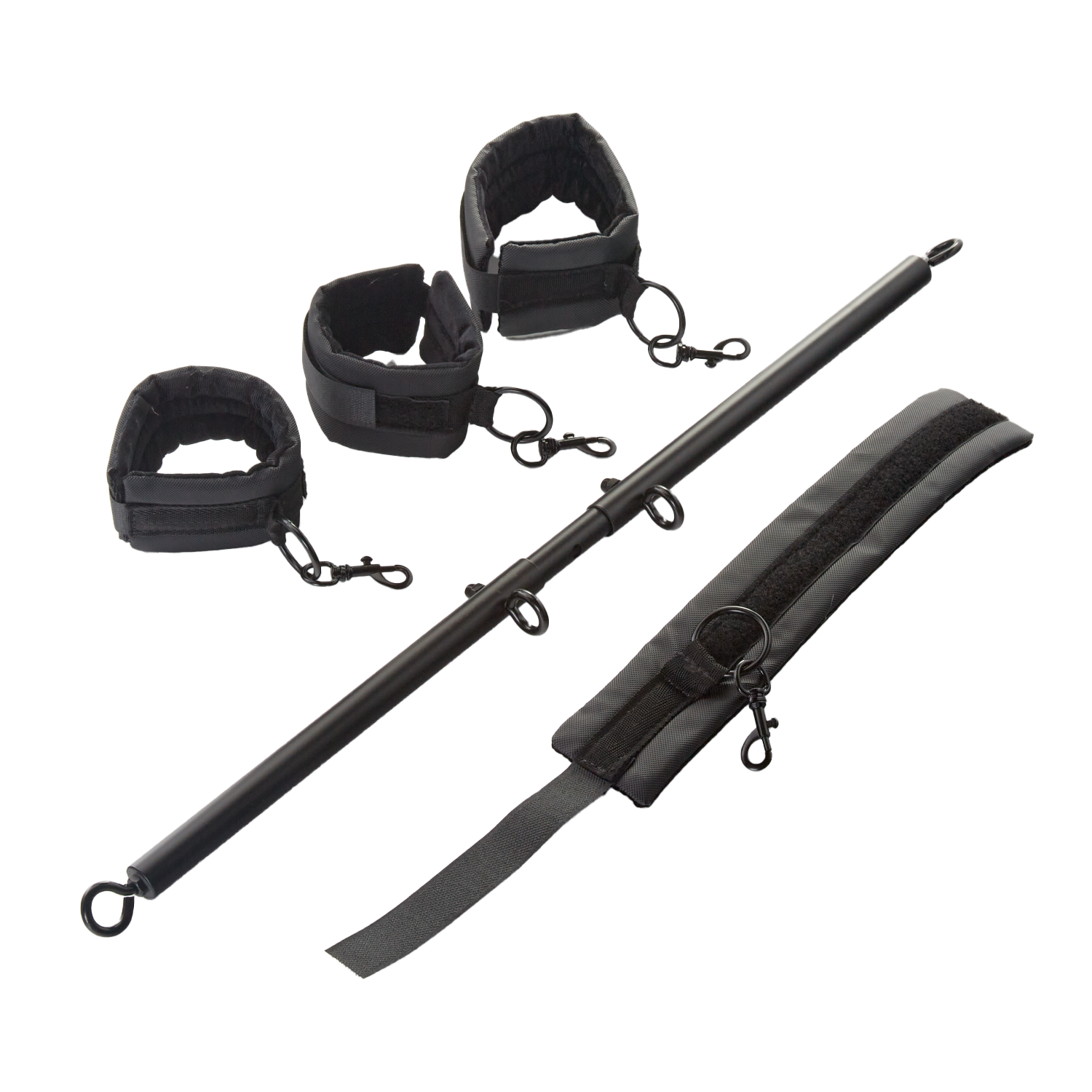 Perfect for spicy exploration, this spreader bar features four velvet-lined cuffs perfect for restraining wrists and ankles. The spreader bar itself is adjustable, extending out to put the restrained partner into sensual, compromising positions.