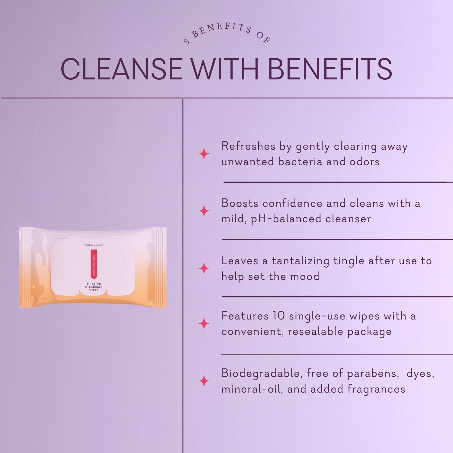 These pH-balanced cleansing wipes are designed to freshen your most intimate areas. Infused with a unique formula, these wipes remove unwanted bacteria and odors while leaving behind a tantalizing tingle. Perfect for on-the-go use, they come in a convenient resealable package for effortless storage.