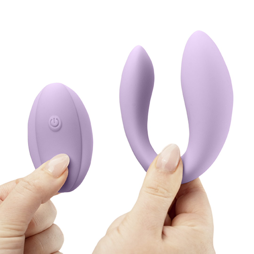 The curved design of this unique, premium massager allows it to fit seamlessly into intimate moments, providing deeper sensations for one partner and a tighter experience for the other.